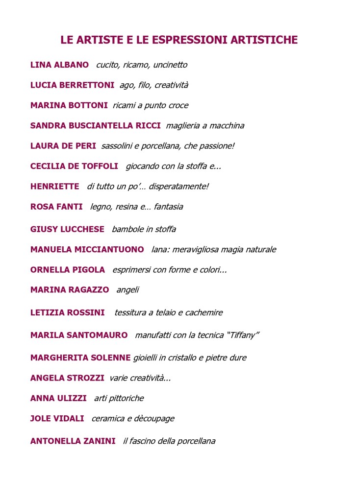 e artista di oggetti d’arte e di artigianato, lasciando libero spazio alla fantasia e alla solidarietà.