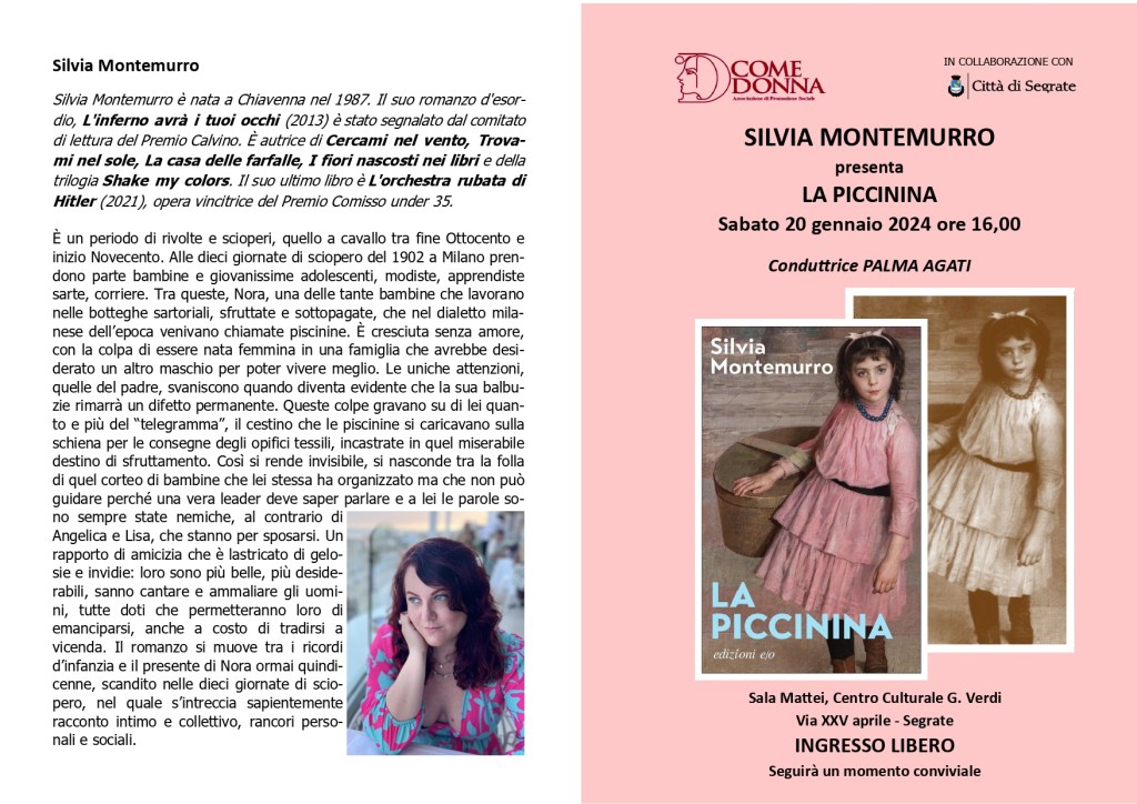 Uncategorized LA PICCININA di Silvia Montemurro Pubblicato da D come Donna il gennaio 9, 2024 Condividi: Condividi su X (Si apre in una nuova finestra) X Condividi su Facebook (Si apre in una nuova finestra) Facebook Mi piace Caricamento... Correlati Pubblicato da D come Donna D Come Donna è un associazione di promozione Sociale con Sede a Segrate (MI) Vedi tutti gli articoli di D come Donna