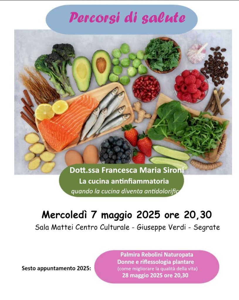 Uncategorized Percorsi di salute Pubblicato da D come Donna il Maggio 3, 2025 La cucina antinfiammatoria Condividi: Condividi su X (Si apre in una nuova finestra) X Condividi su Facebook (Si apre in una nuova finestra) Facebook Mi piace Caricamento... Correlati Pubblicato da D come Donna D Come Donna è un associazione di promozione Sociale con Sede a Segrate (MI) Vedi tutti gli articoli di D come Donna