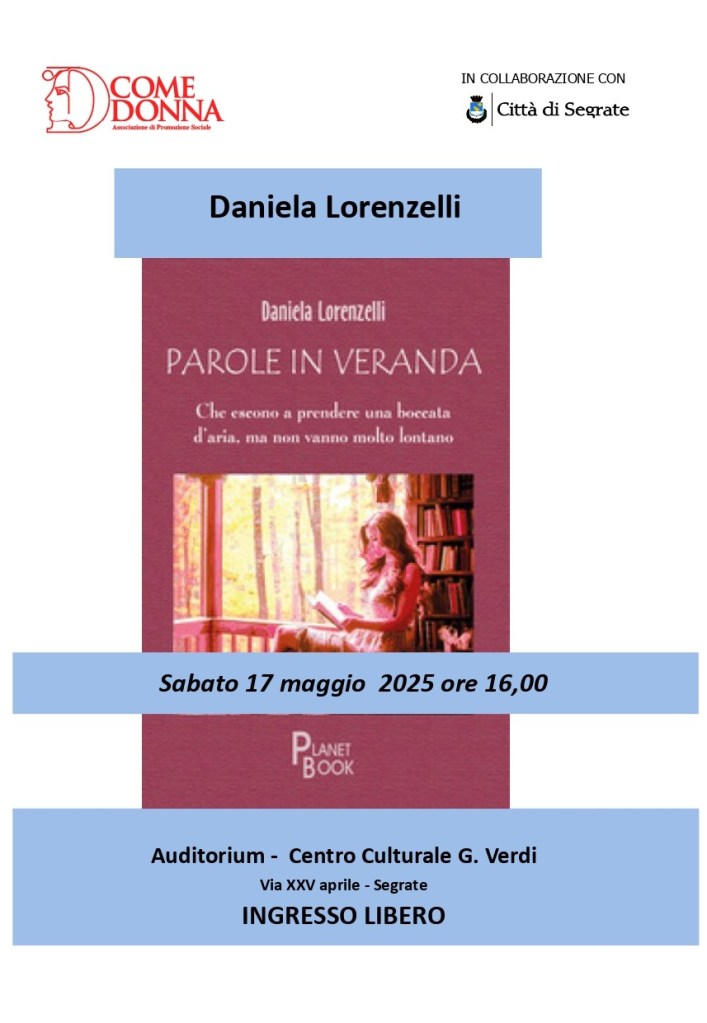 Uncategorized Parole in Veranda Pubblicato da D come Donna il Maggio 15, 2025 Daniela Lorenzelli Condividi: Condividi su X (Si apre in una nuova finestra) X Condividi su Facebook (Si apre in una nuova finestra) Facebook Mi piace Caricamento... Correlati Pubblicato da D come Donna D Come Donna è un associazione di promozione Sociale con Sede a Segrate (MI) Vedi tutti gli articoli di D come Donna