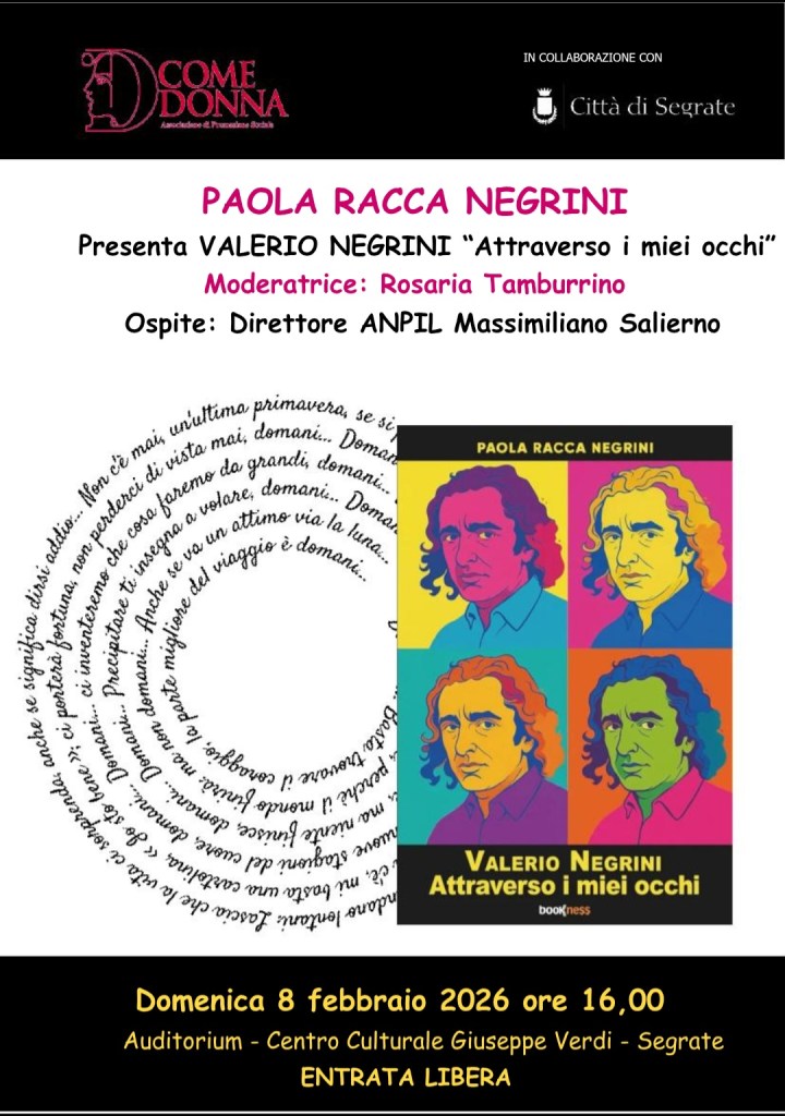 Uncategorized “Attraverso ituoi occhi” Pubblicato da D come Donna il gennaio 24, 2026 di Paola Racca Negrini Condividi: Condividi su X (Si apre in una nuova finestra) X Condividi su Facebook (Si apre in una nuova finestra) Facebook Mi piace Caricamento... Correlati Pubblicato da D come Donna D Come Donna è un associazione di promozione Sociale con Sede a Segrate (MI) Vedi tutti gli articoli di D come Donna