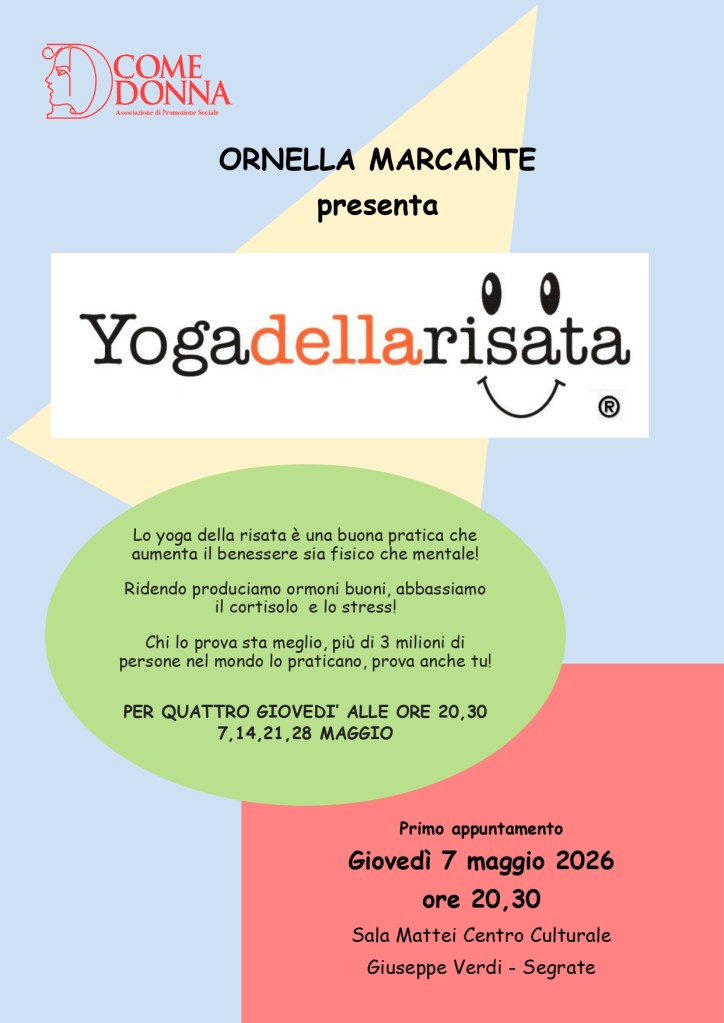 Uncategorized Yoga della risata Pubblicato da D come Donna il aprile 9, 2026 di Ornella Marcante Condividi: Condividi su X (Si apre in una nuova finestra) X Condividi su Facebook (Si apre in una nuova finestra) Facebook Mi piace Caricamento... Correlati Pubblicato da D come Donna D Come Donna è un associazione di promozione Sociale con Sede a Segrate (MI) Vedi tutti gli articoli di D come Donna